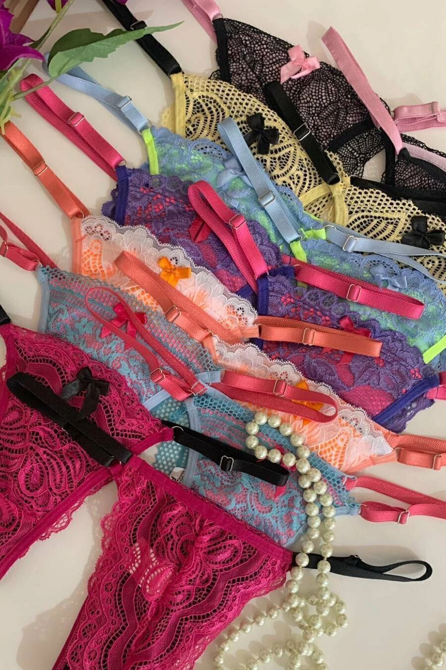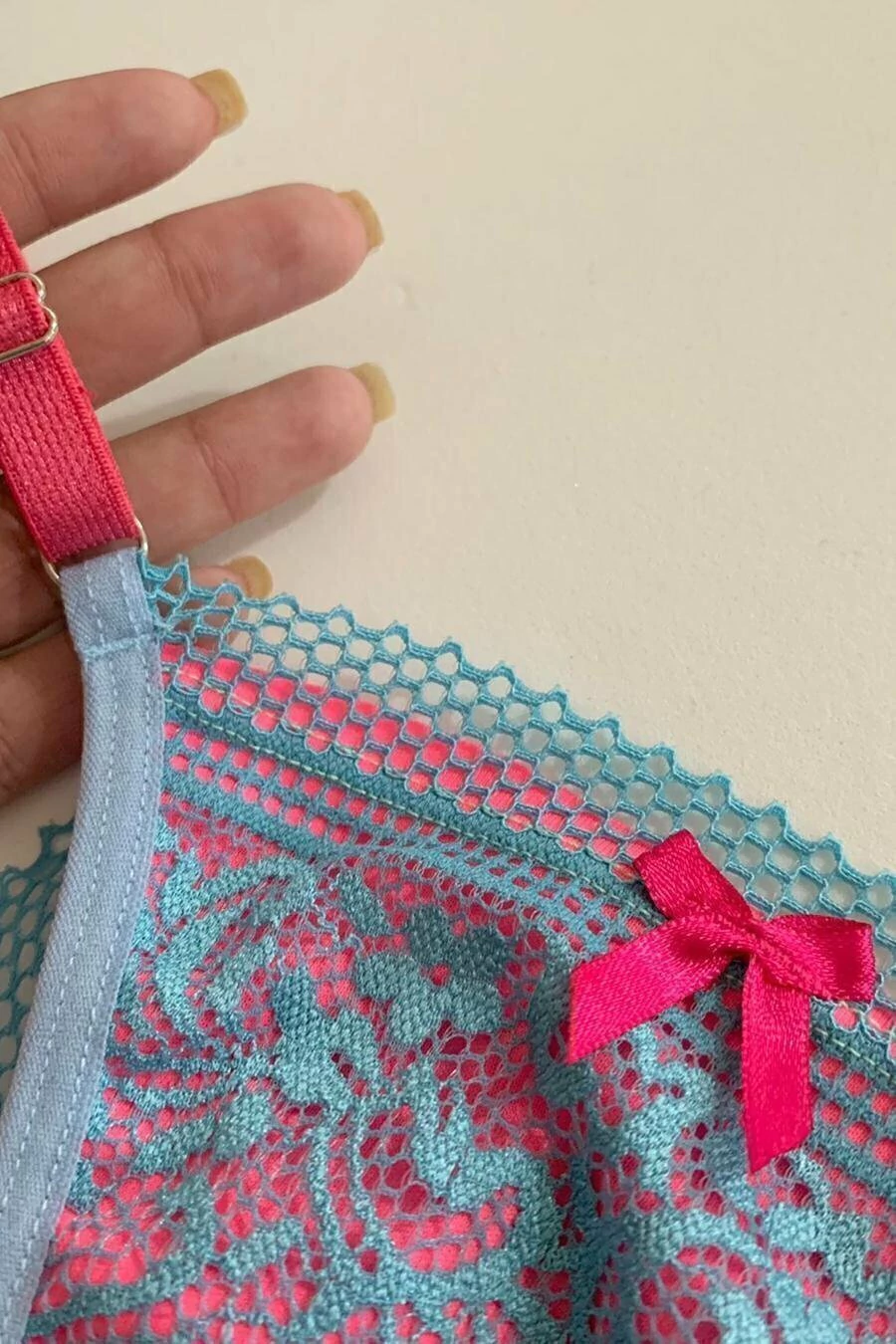 • Frente tem renda e microfibra forrando, as costas é só a renda