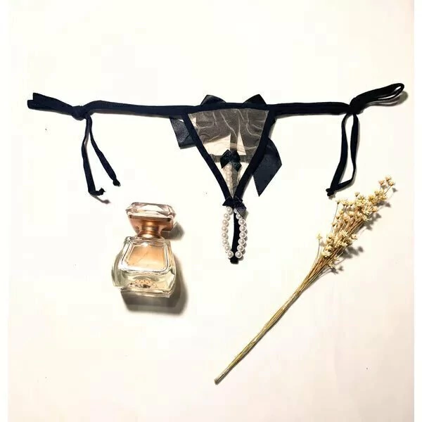 Calcinha  tailandesa fio  sexy em tule ilusion e fitas em viés com amarração nas laterais.A calcinha conta com um estimulador feminino e um masculino em pérolas.