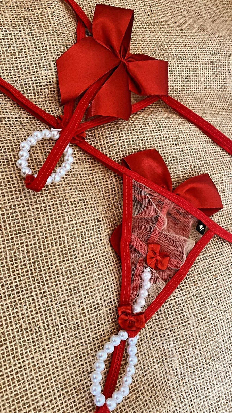 Calcinha  tailandesa fio  sexy em tule ilusion e fitas em viés com amarração nas laterais.A calcinha conta com um estimulador feminino e um masculino em pérolas.