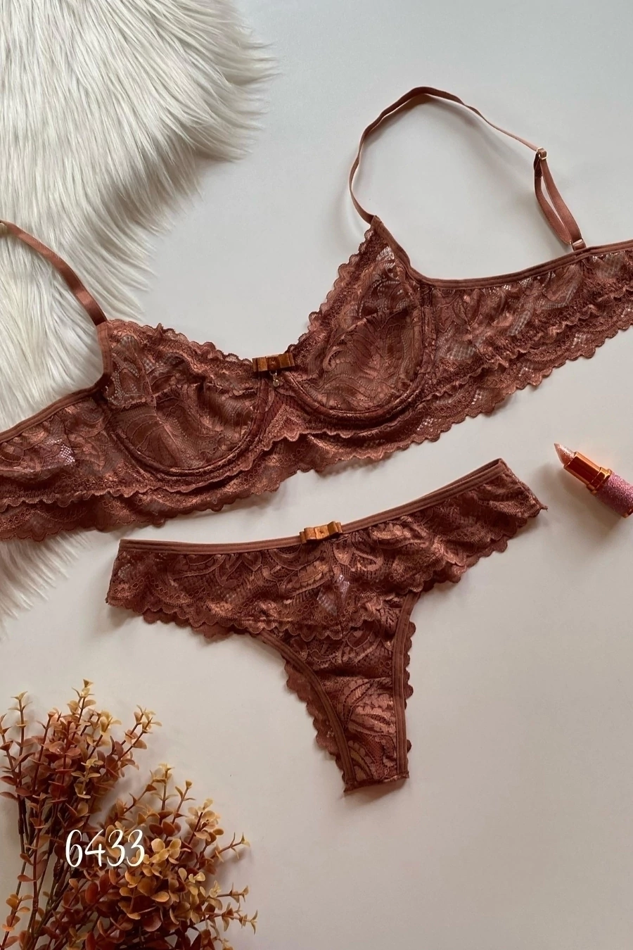 CONJUNTO TODO EM RENDA SEM BOJO COM ARO E CALCINHA FIO.
