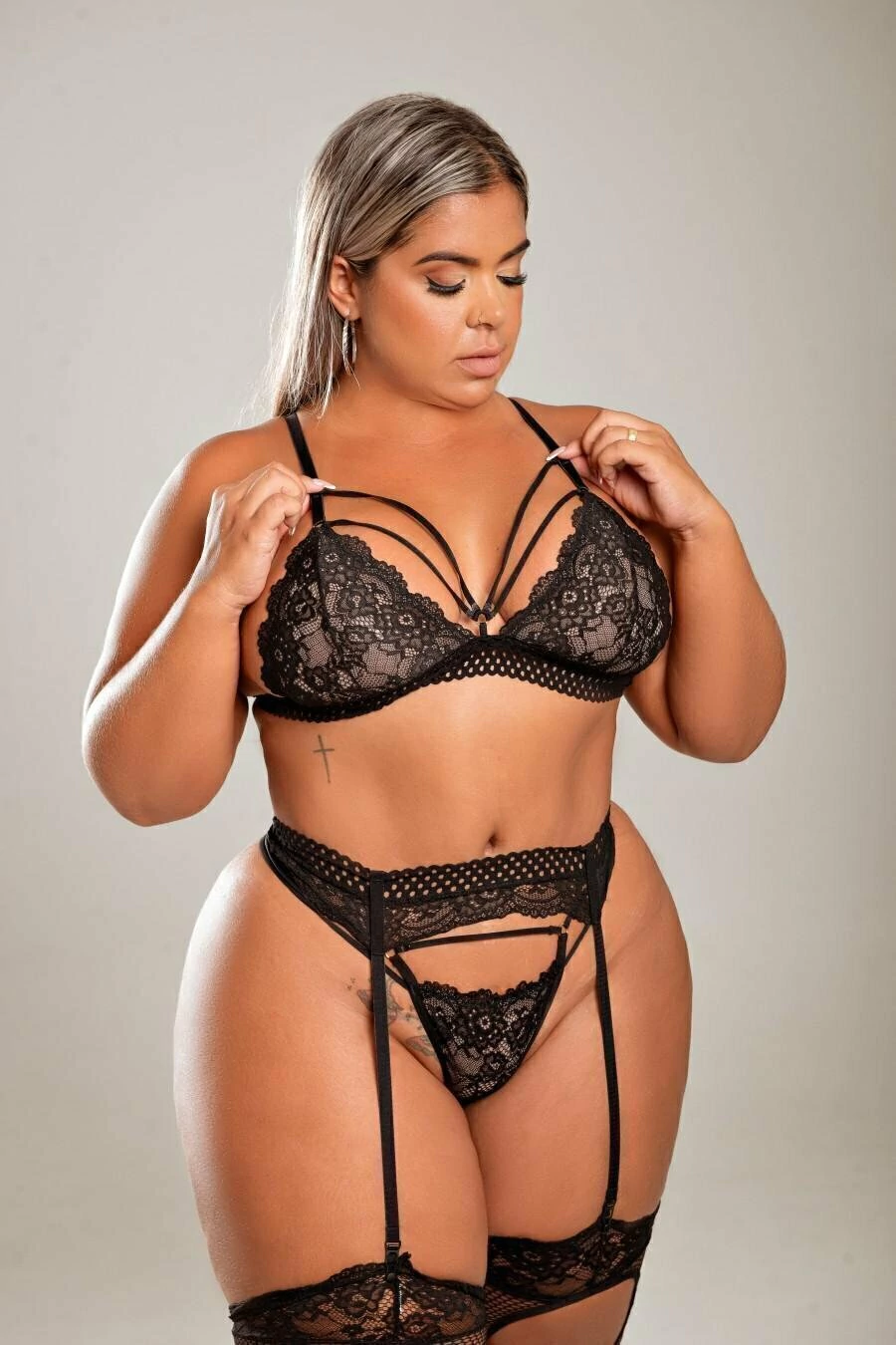 Conjunto feito em renda, sem bojo, com uma base de elástico largo, que garantem conforto e propõe uma sustentação perfeita, bojo decorado com argolas que dão um charme ao decote, a calcinha possui laterais em elástico fino, costas fio, acompanha cinta liga super sexy, criada especialmente para quem gosta de comodidade e luxo.