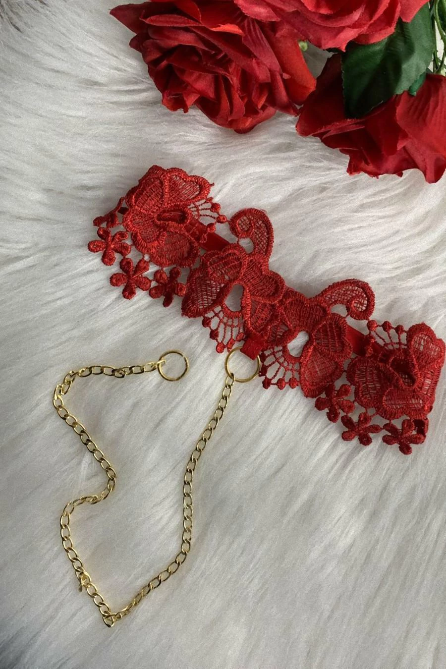 Coleira com renda e corrente, para usar e despertar seus desejos mais loucos.