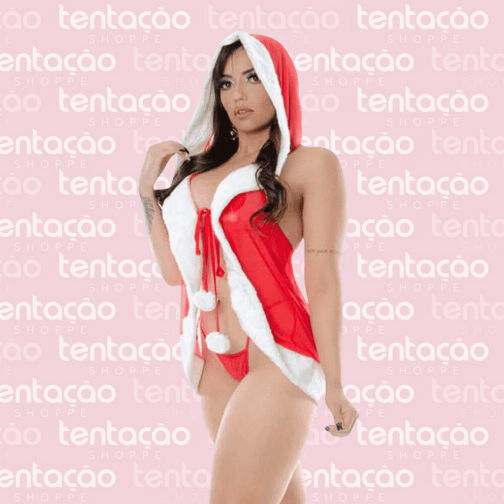 Kit Fantasia confeccionado em tule com elastano, possui acabamento em pelúcia, trazendo um charme a mais para a sua peça, lembrando as fantasias clássicas de Papai Noel. Sua modelagem é estilo Hobe, com costas e frente abertas. Você pode fechar sua fantasia, através de duas alças elásticas com pompom nas pontas.