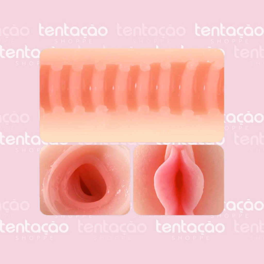 Já o interior conta com um canal penetrável em silicone maleável, com texturas internas estrategicamente posicionadas para intensificar cada movimento, simulando sensações reais com muito mais prazer.