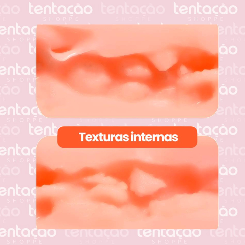 Formato anatômico feminino com visual realista. Interior em silicone maleável, macio e seguro para o corpo.
