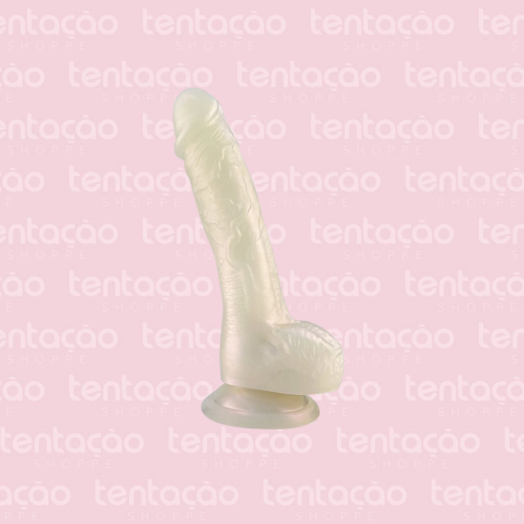 Prótese realística em forma de pênis, confeccionado em PVC possui glande definida, textura de veias, escroto e ventosa para penetrações em ângulo reto.
