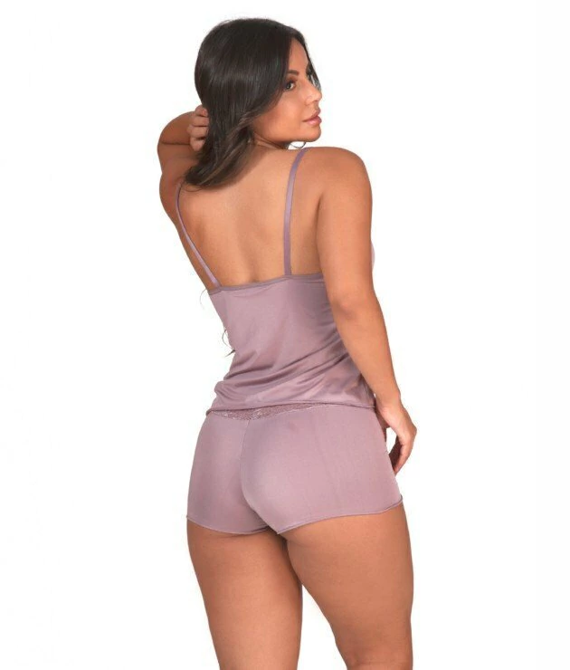 Este modelo é composto por 90% poliéster e 10% elastano. O desenho do detalhe em renda pode variar. As alças possuem regulagem em metal. Este short doll não possui bojo.