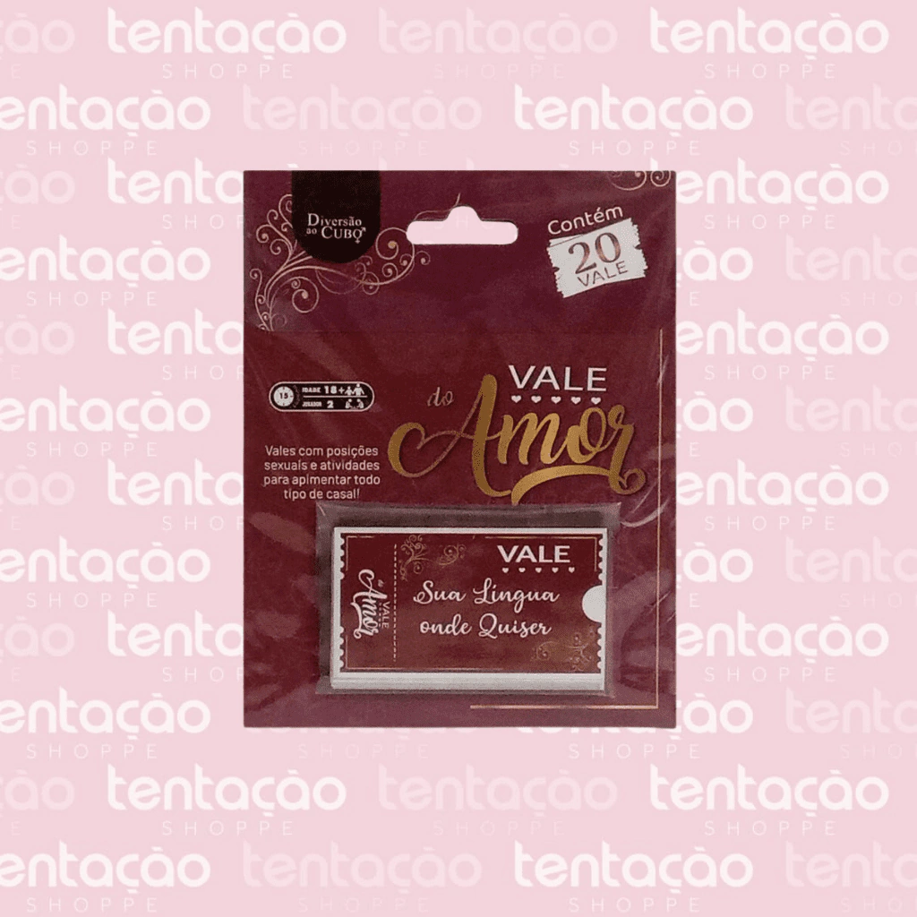 Vale do Amor é um jogo para casais que gostam de se divertir e sair da rotina na hora do sexo, possui 20 cartas com sugestões de posições sexuais ou atividades para estimular ainda mais a criatividade do casal, tem também o vale em branco, onde você pode sugerir algo diferente!